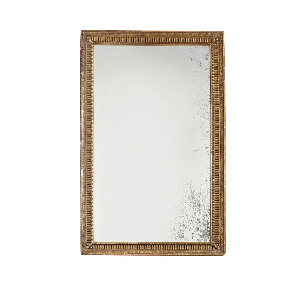 the rectangular mirror plate in a reeded and leaf moulded frame