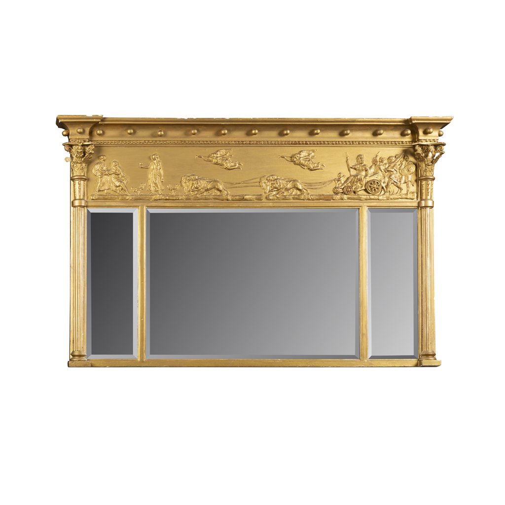 REGENCY GILT AND GESSO OVERMANTLE TRIPTYCH MIRROR