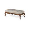 the button upholstered rectangular top above foliate and C scroll carved frame with cabriole legs with ceramic castors; covered in pale celadon green fabric