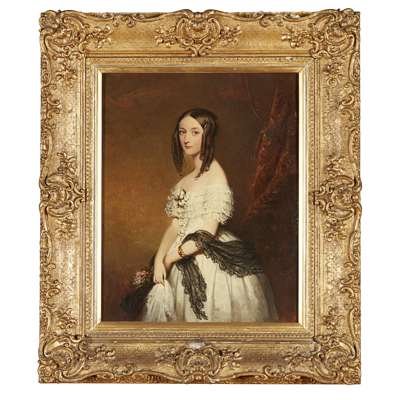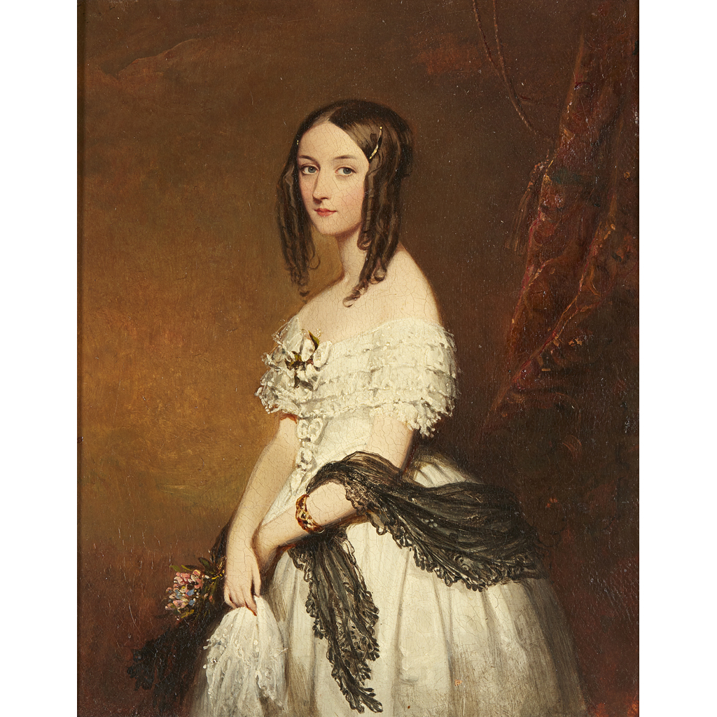 THREE QUARTER LENGTH PORTRAIT OF A YOUNG LADY IN WHITE