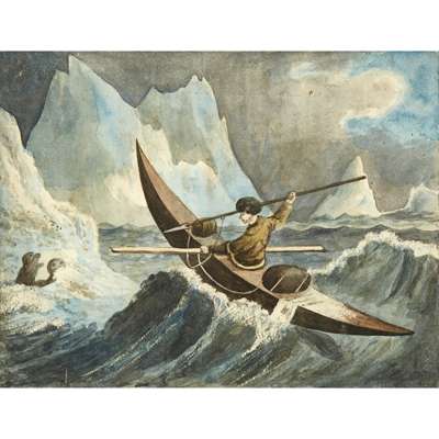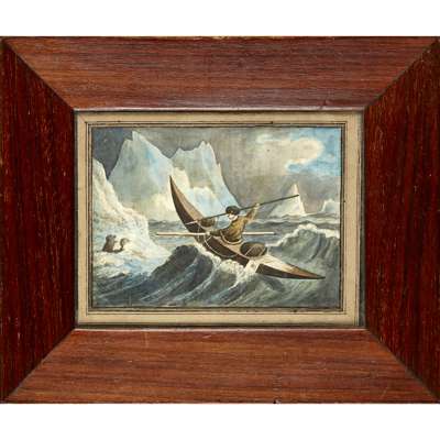 Note: There is an extensive inscription included in the back of the frame on the nature and history of seal hunting: 'Seal catching is art to which all the Greenlanders aspires, they are trained to it from their infancy and by it they maintain their families . . . '
