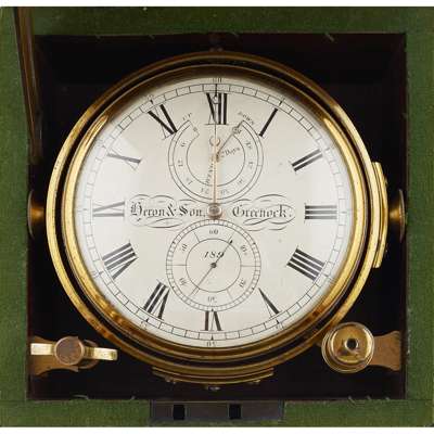 MAHOGANY CASED TWO DAY MARINE CHRONOMETER, HERON & SON, GREENOCK Y