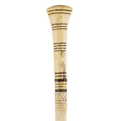 the octagonal ivory pommel tapering to cut and inset bands above the bone shaft with hatched and twist carving