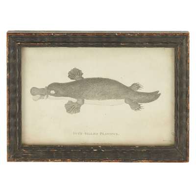 full mount, 56.5cm long; together with a FRAMED ENGRAVING, 'DUCK-BILLED PLATYPUS', by James Heath from 'General Zoology of Systematic Natural History' by George Shaw, inscribed 1800 FEBY. PUBLISHED BY G. KEARSLEY. FLEET STREET./ HEATH SCULP. 11cm x 18cm (2)