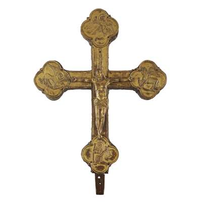 the central figure of Christ enclosed by four quatrefoil terminals depicting the tetremorph/four evangelists