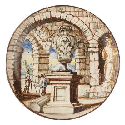 SMALL ITALIAN POLYCHROME MAIOLICA PLATE, WORKSHOP OF CARLO GIUSEPPE RAMPINI, PAVIA