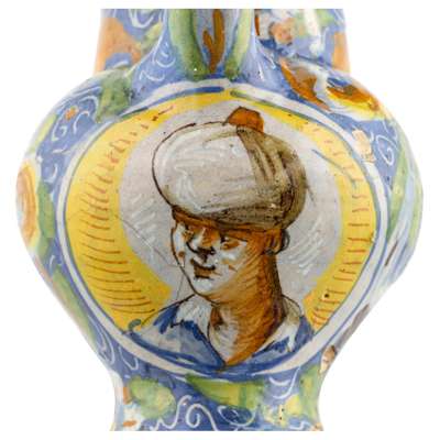ITALIAN POLYCHROME MAIOLICA WET DRUG JAR, POSSIBLY MAESTRO DOMENICO, VENICE