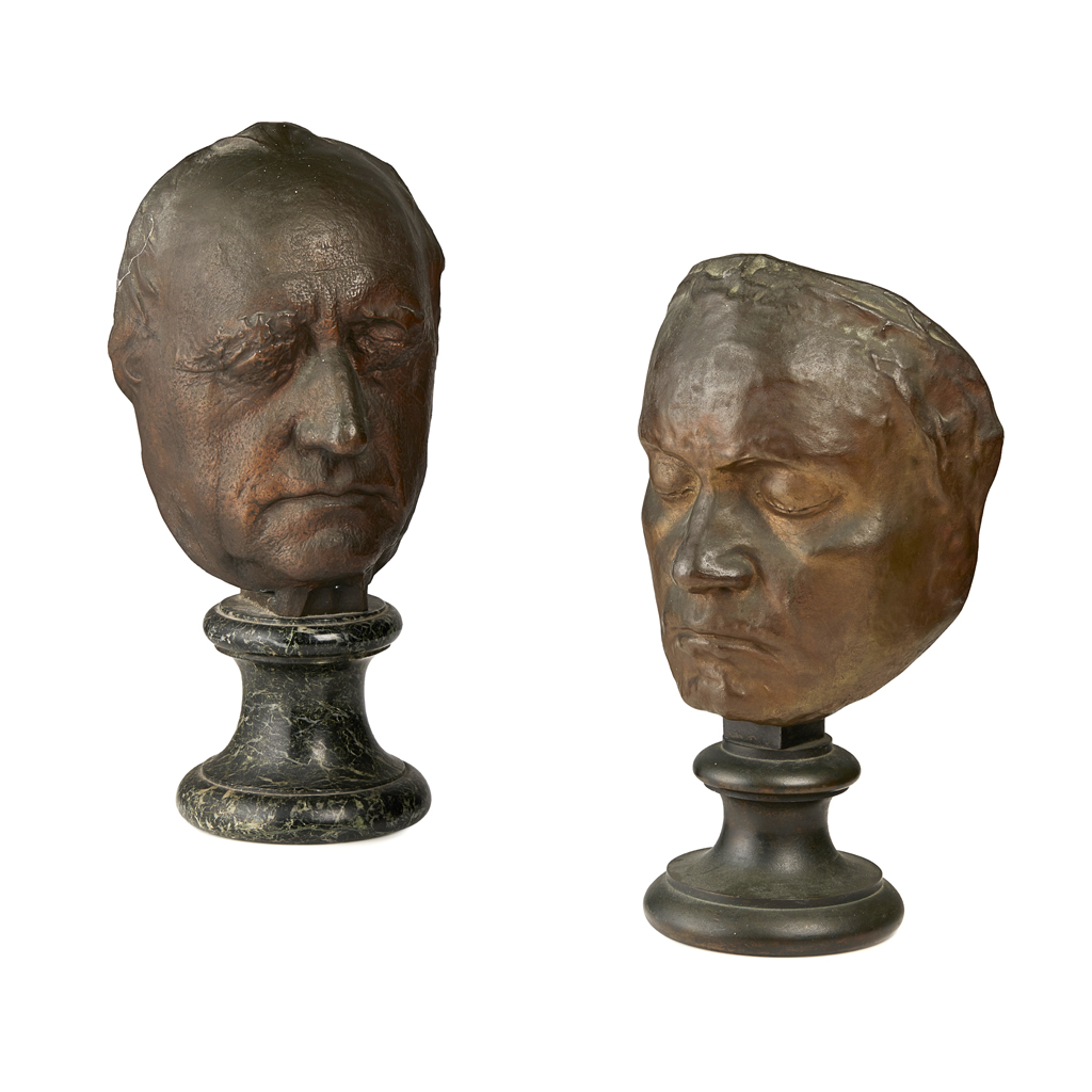 TWO CONTINENTAL BRONZE LIFE MASKS