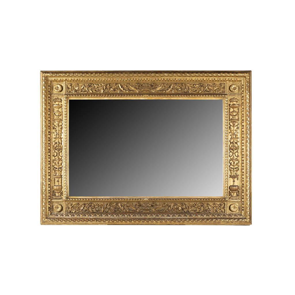 FLORENTINE CARVED GILTWOOD AND GESSO OVERMANTEL MIRROR