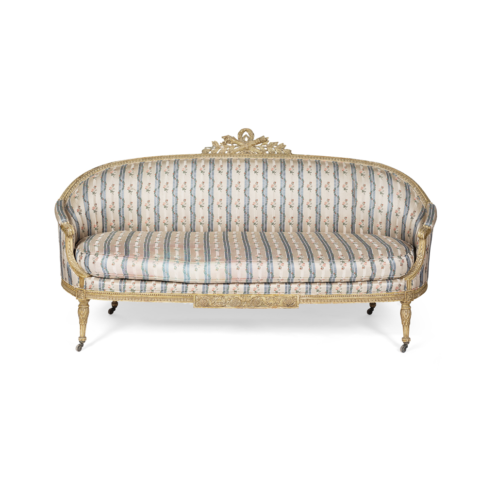 LOUIS XVI STYLE PAINTED SOFA EN CABRIOLE