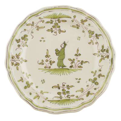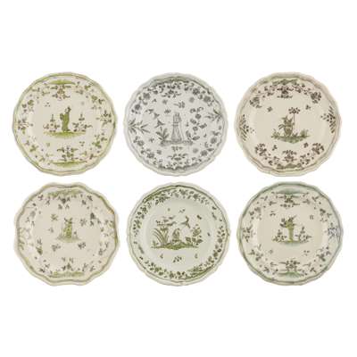 SIX GREEN GLAZED FRENCH FAIENCE PLATES