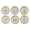 with waved rims enclosing Chinese figures engaged in various pursuits, within floral borders and line bands, some with X form mark to undersides, one attributed to Bordeaux (6)