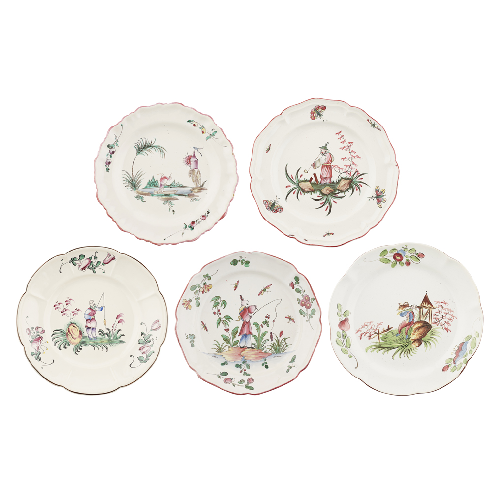 FIVE FRENCH FAIENCE PLATES, ATTRIBUTED TO LES ISLETTES