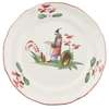 of various sizes, with lobed rims decorated with flower sprigs, enclosing polychrome figures of Chinese men engaged in various pursuits including pipe smoking (7)