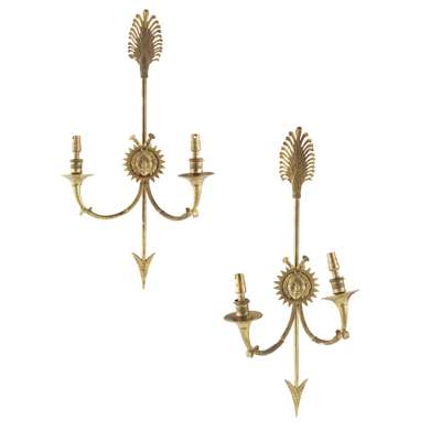 PAIR OF FRENCH EMPIRE STYLE GILT BRONZE WALL SCONCES