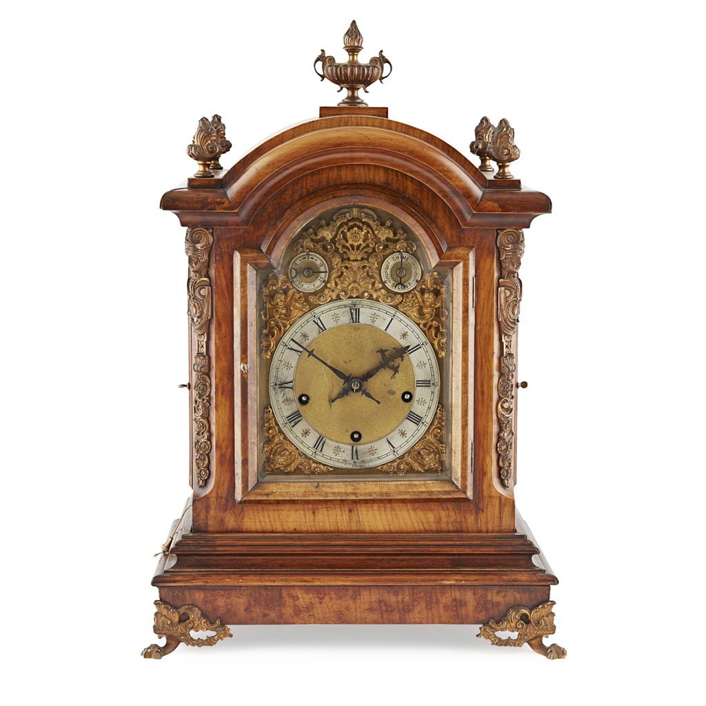 LARGE GERMAN WALNUT CHIMING BRACKET CLOCK, R. M. SCHNECKENBURGER