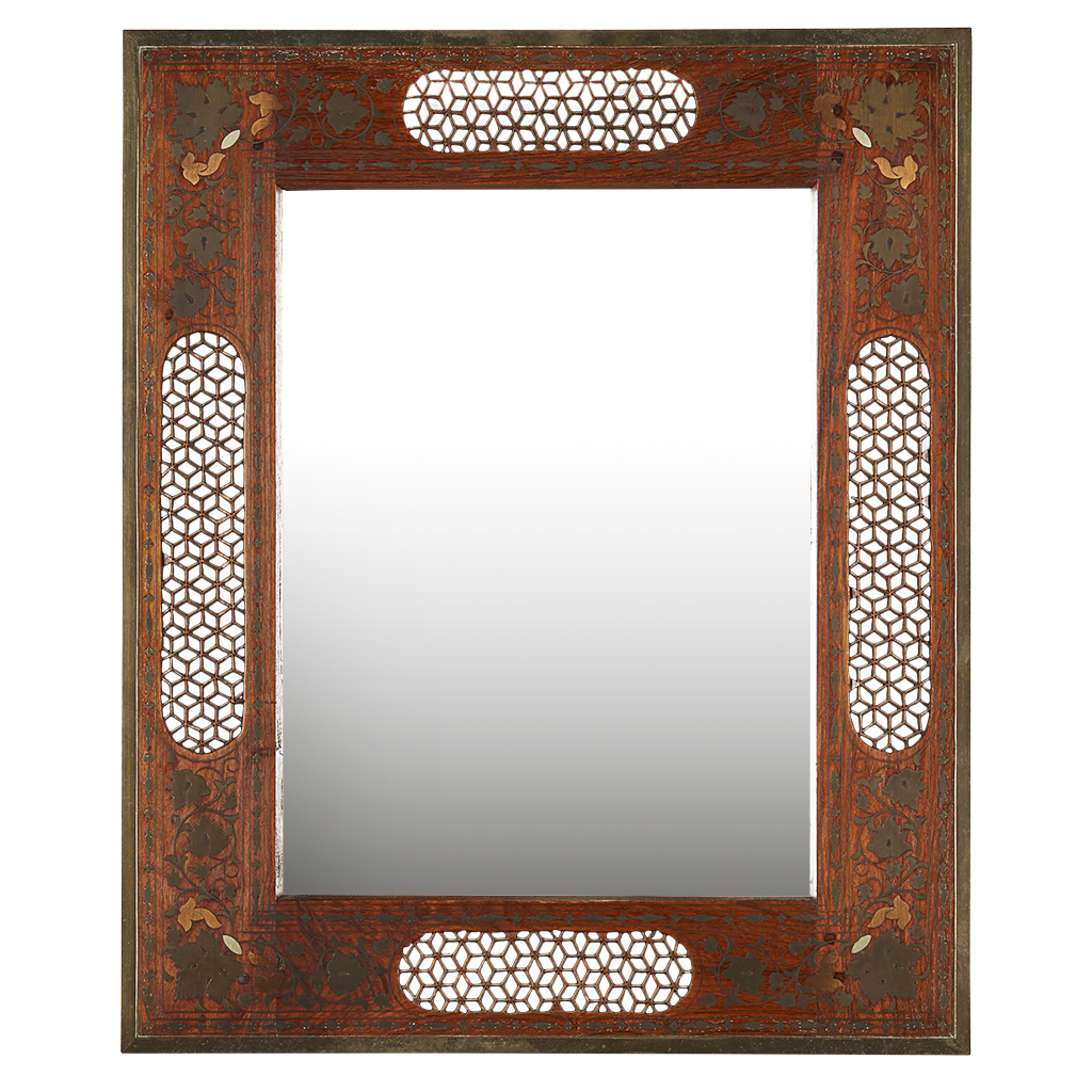 INDIAN ROSEWOOD BRASS AND COPPER INLAID MIRROR