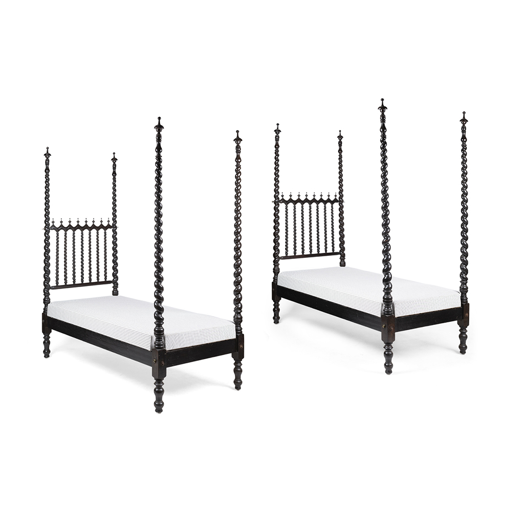 PAIR OF ANGLO-INDIAN EBONY FOUR-POST SINGLE BEDS