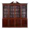 in the Hepplewhite style, the swan neck pediment above a dentil moulded frieze inlaid with rosettes and fluting, above a pair of astragal glazed doors flanked by side doors all opening to adjustable shelves, on a projecting breakfront base with moulded panel doors, enclosing shelves