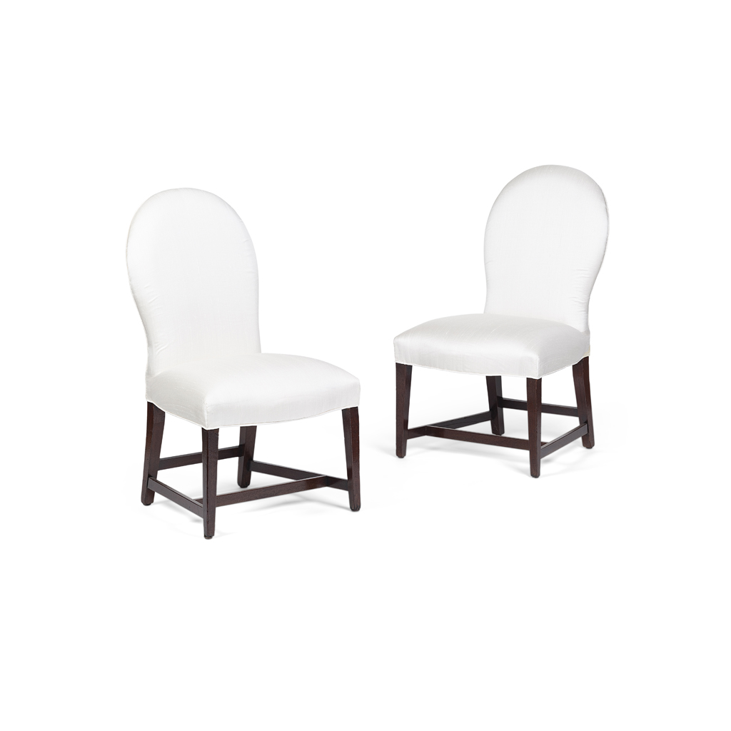 MATCHED PAIR OF GEORGE III MAHOGANY UPHOLSTERED SIDE CHAIRS