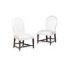 the rounded backs above serpentine stuffover seats, raised on square tapered legs joined by stretchers, covered in white silk (2)