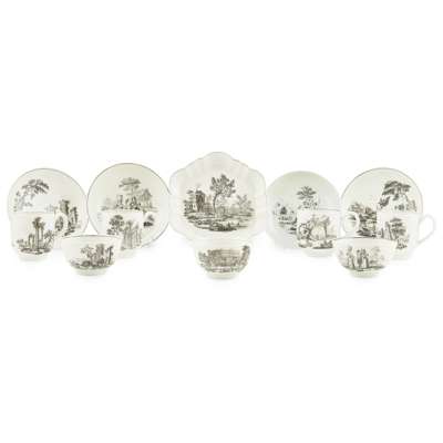 WORCESTER MATCHED 'EN GRISAILLE' PART TEA SERVICE
