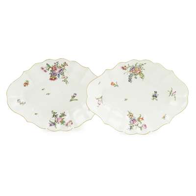 TWO WORCESTER POLYCHROME DESSERT DISHES