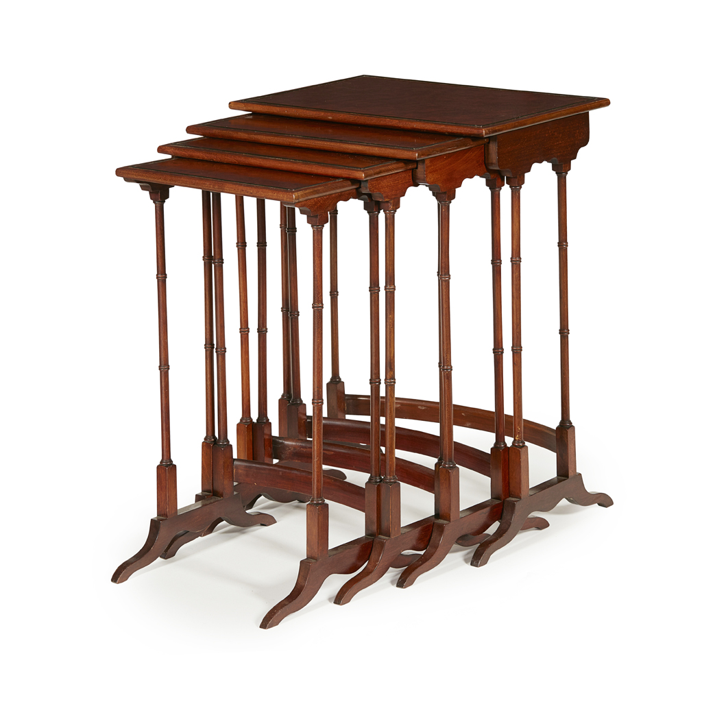 SET OF REGENCY PLUM PUDDING MAHOGANY QUARTETTO TABLES