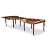 the rounded rectangular top opening on a telescopic action to accommodate three leaf inserts, above a wide frieze with bead moulding, raised on turned and reeded legs ending in brass caps and castors