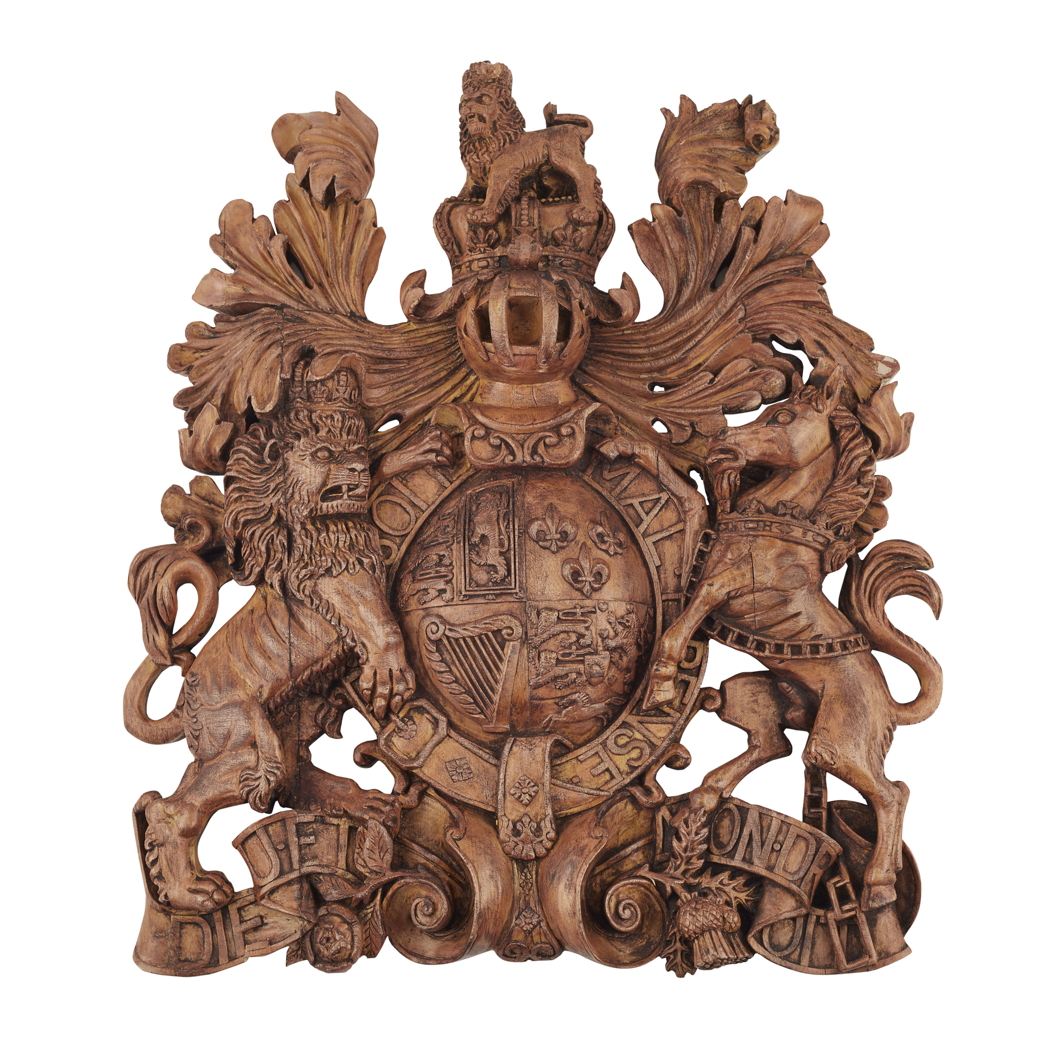 CARVED FRUITWOOD ROYAL COAT OF ARMS