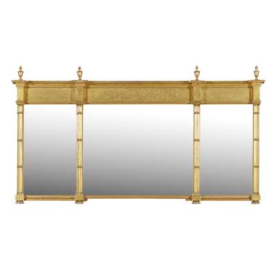 REGENCY GILTWOOD AND GESSO TRIPLE OVERMANTEL MIRROR