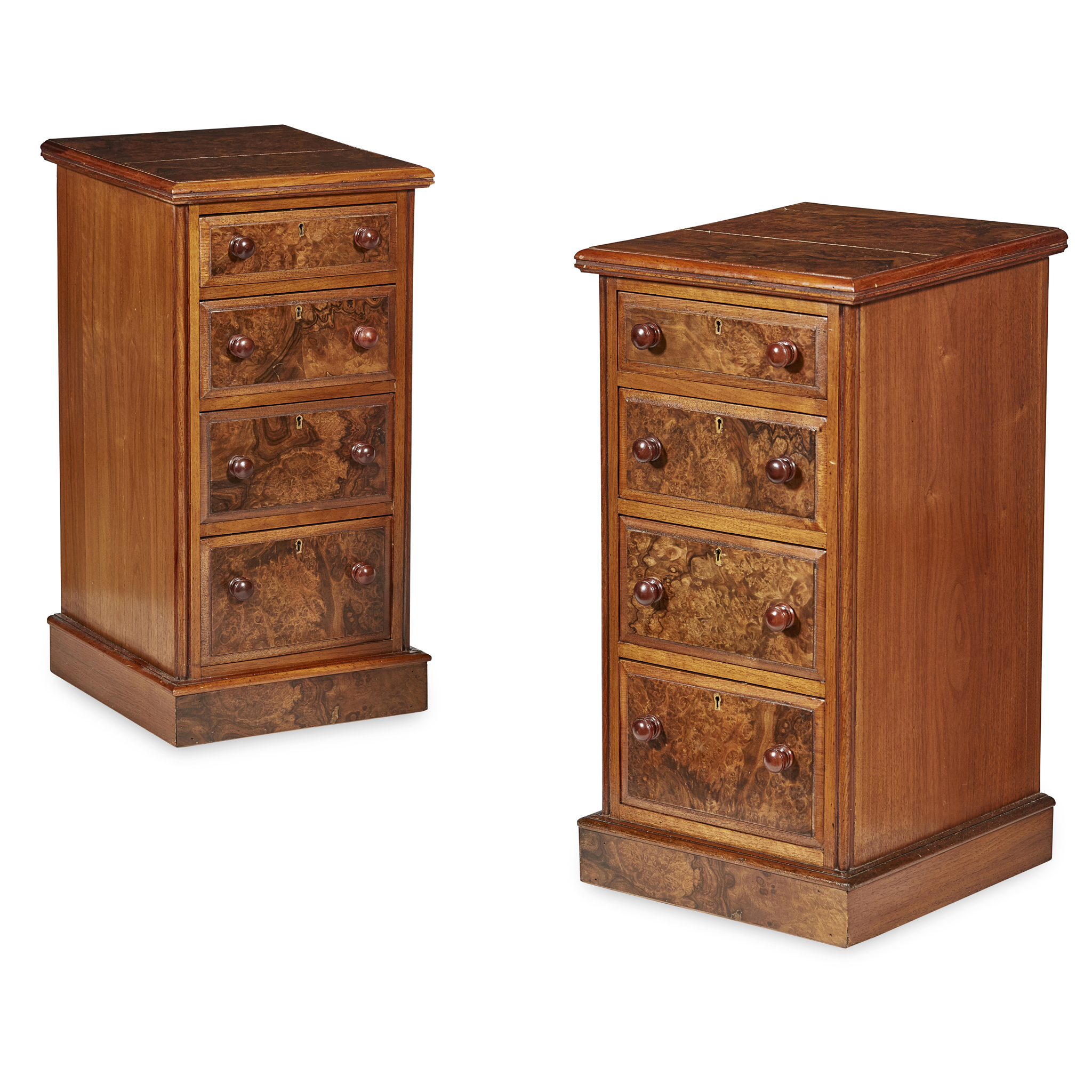 PAIR OF VICTORIAN BURR WALNUT BEDSIDE CABINETS
