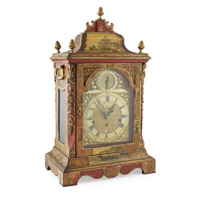 LATE GEORGE II RED JAPANNED CHIMING BRACKET CLOCK, WILLIAM CREAK, LONDON