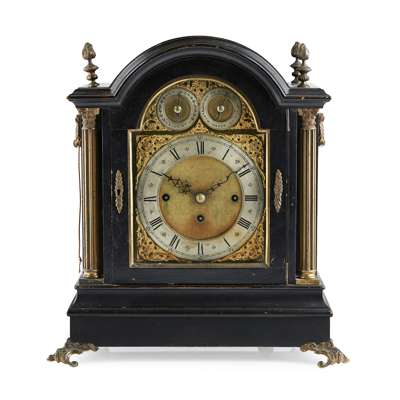 LATE VICTORIAN EBONISED BRASS MOUNTED CHIMING BRACKET CLOCK