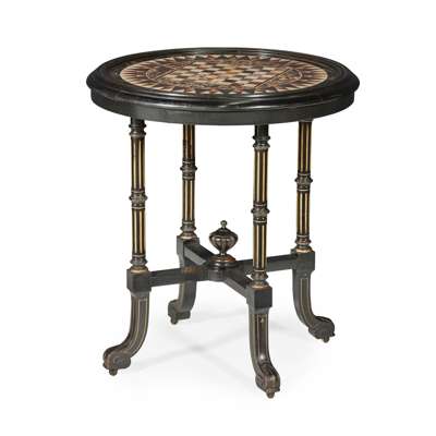 VICTORIAN SPECIMEN MARBLE, EBONISED AND GILT CENTRE TABLE