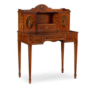 LATE VICTORIAN PAINTED SATINWOOD AND KINGWOOD BONHEUR DU JOUR