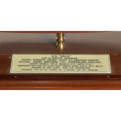 built for the Short Brothers Ltd. Sunderland, England, owners Steamship Company Pacific, Copenhagen, Denmark, with an ivory plaque and mahogany glazed case