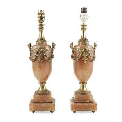 PAIR OF ONYX GILT METAL MOUNTED TABLE LAMPS