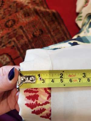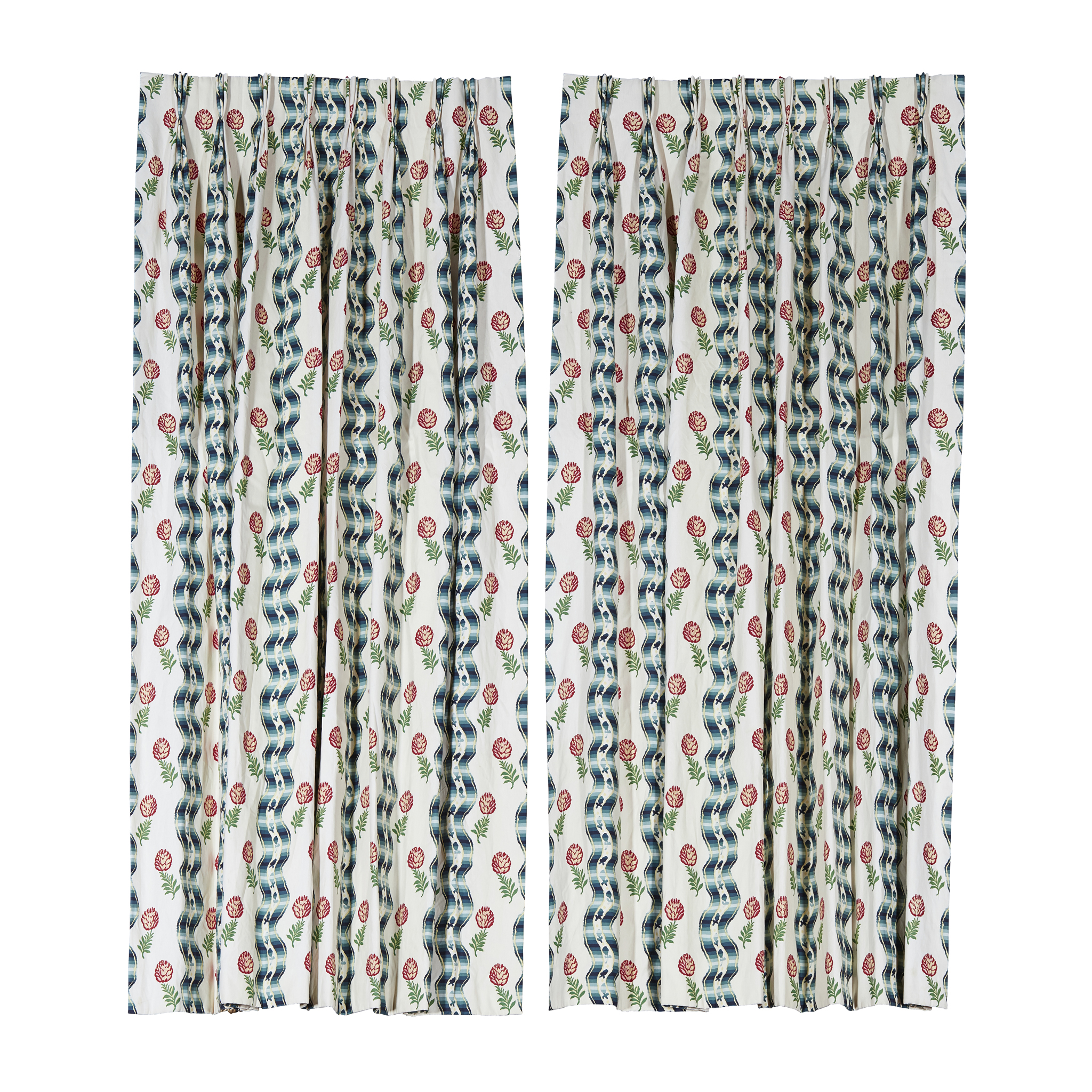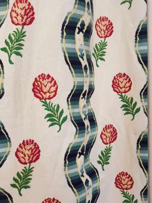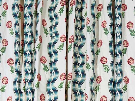 each panel with a repeating pattern of red flowers with green stems and undulating blue vertical stripes (3)
