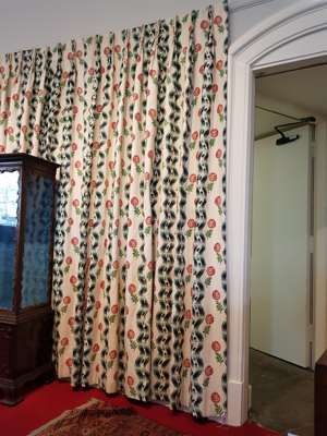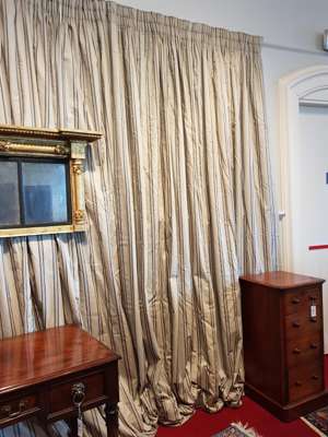 THREE PAIRS OF LINED AND INTERLINED CURTAINS