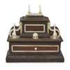in the form of a tomb monument, surmounted by turned ivory finals above scrolled spandrels, corresponding finials and an ivory skull, above a single tortoiseshell-veneered drawer