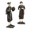 carved as two female musical beggars, with ivory heads, legs and skin showing through their rags; one playing the cymbals, the other one a flute (2)