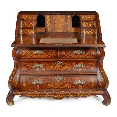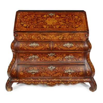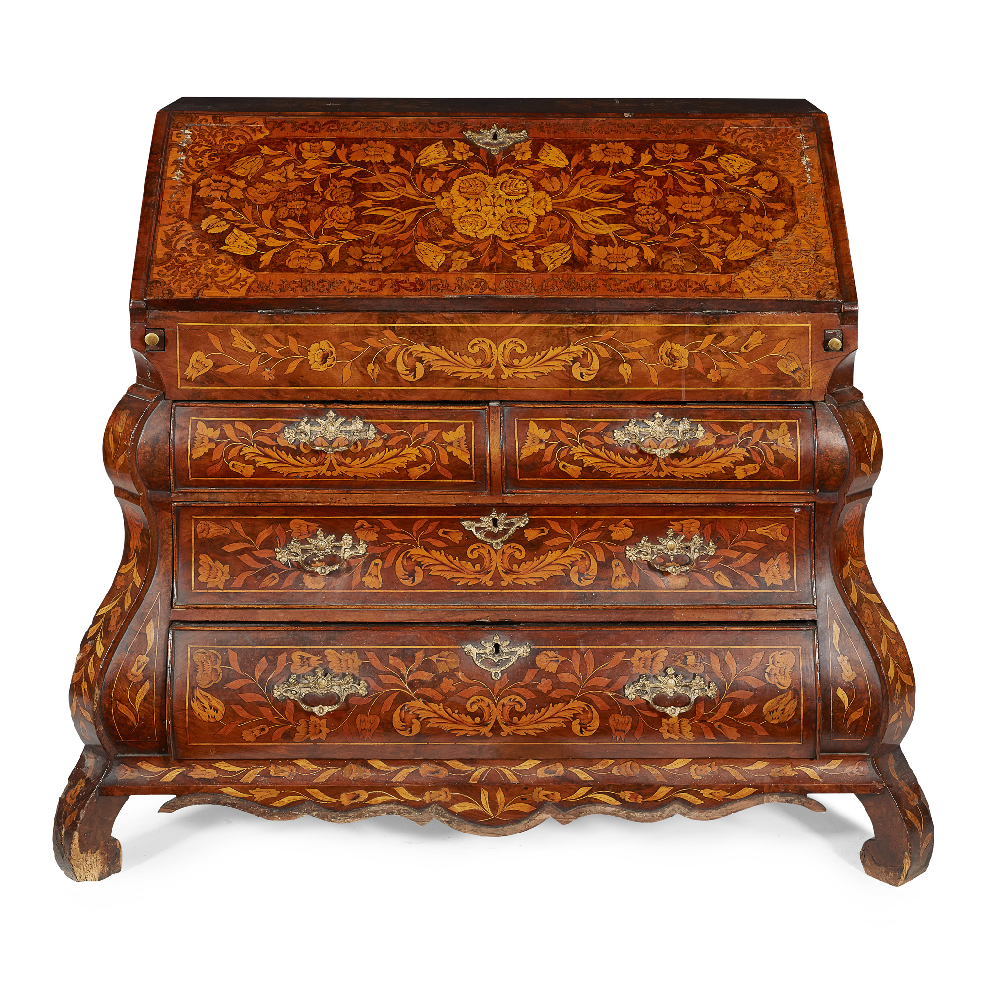 DUTCH WALNUT AND MARQUETRY BOMBÉ BUREAU