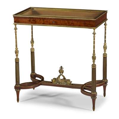 LOUIS XVI STYLE MAHOGANY, BRASS AND GILT BRONZE MOUNTED BIJOUTERIE TABLE BY GEORGES-FRANCOIS ALIX, AFTER A DESIGN BY ADAM WEISWEILLER