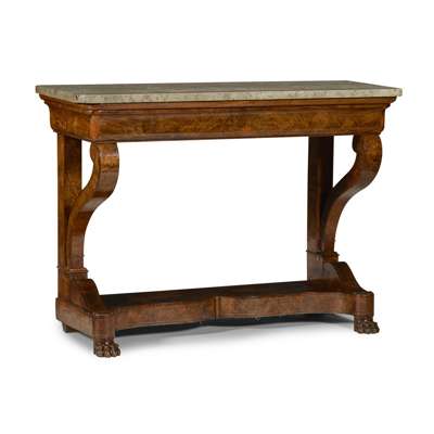 CHARLES X WALNUT MARBLE TOPPED CONSOLE TABLE