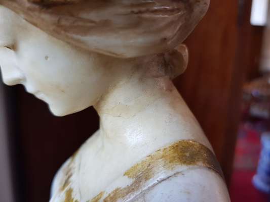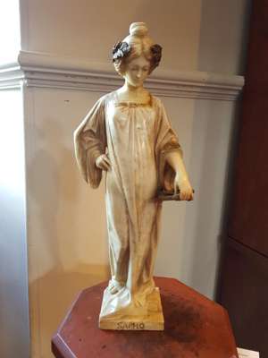 alabaster figure with gilt highlights, signed and inscribed to the base PROF A PITRILLI/ FIRENZE/ SAPHO