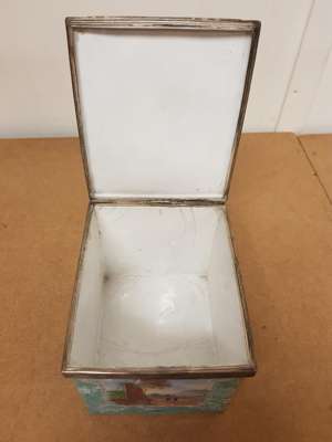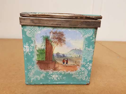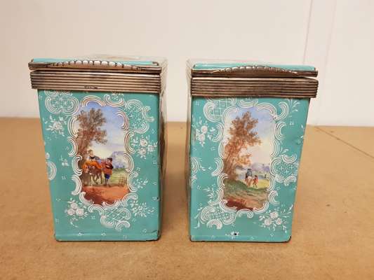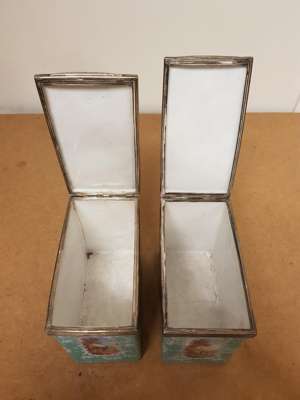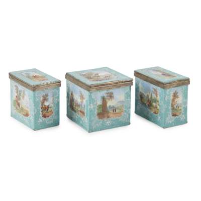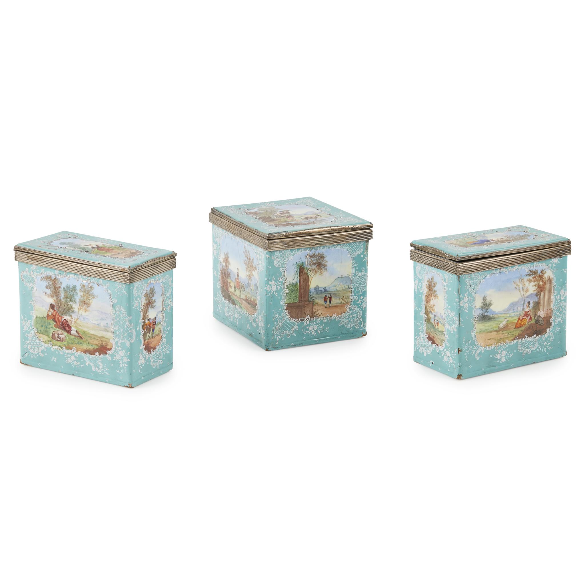 SET OF THREE SILVER MOUNTED ENAMELLED TEA CADDIES