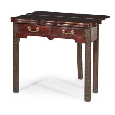 GEORGE III MAHOGANY SERPENTINE TRIPLE-FOLD TEA AND CARD TABLE