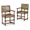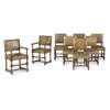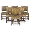 SET OF EIGHT CAROLEAN STYLE OAK AND POLYCHROME LEATHER DINING CHAIRS