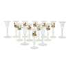 all with bell shaped bowls, two with blue and white airtwist stems, one with a green airtwist stem, and one with a red airtwist stem; together with a SET OF TEN DUTCH ENAMELLED WINE GLASSES, early 20th century, with gilt rims and painted with windmills, on white twist knopped stems and conical feet